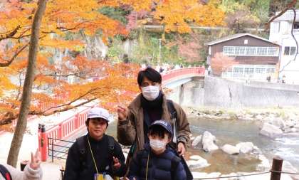 さくら学級が、小渡小と稲武小の仲間と共に香嵐渓に出かけました。公共バスで訪れた子どもたちは、集めた落ち葉を生かして絵を描いたり、他校の友達とクイズをしたり、「猿回し」の園芸を鑑賞したりと、秋の香嵐渓をいっぱい楽しみました。
