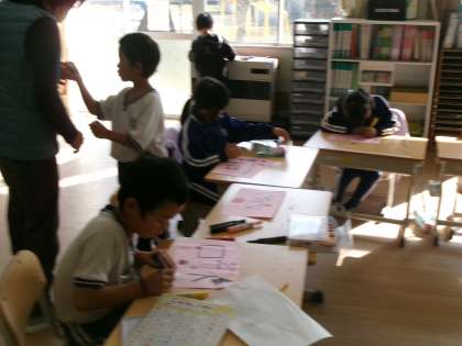 2年生が生活科の授業で、12月21日に1年生を招待する「おもちゃまつり」の準備を着々と進めています。おもちゃは、「さかなつり」「ロケット」「空気砲」「紙トンボ」などたくさんの種類を作っています。優しく頼れるお兄さんお姉さんめざして、子どもたちは張り切って作っています!
