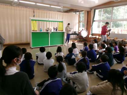 昼の休み時間に、図書委員による人形劇「オルゴールのおくりもの」が上演されました。図書委員の気持ちの入ったセリフの言い回しに聞き入った観客の子どもたちや教員は、楽しいお昼のひとときを過ごすことができました。