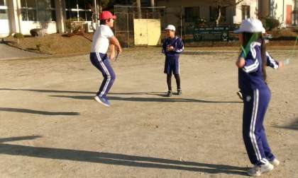 今日から、縄跳び検定に向けた縄跳びの練習が始まりました。初日の今日は、縦割りのなかよし班ごとに、いろいろな跳び方を練習しました。上級生が下級生に跳び方のコツを優しく教える姿が多く見られ、下級生も頑張って練習していました。