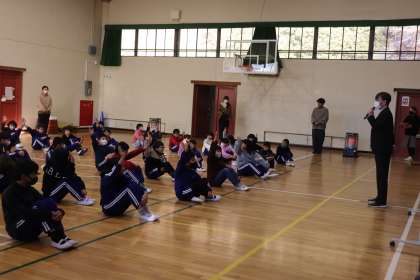 朝の活動の時間に、全校で冬休み明け集会を行いました。集会では、校長講話の後、子どもたちは、縦割りのなかよし班ごとに集まって、新年の抱負を伝え合いました。苦手教科の克服やマラソンの練習の継続など、子どもたちからいろいろな抱負が発表される度、班の仲間から激励の拍手が送られ、仲間とともにフレッシュな気持ちで1年をスタートすることができました。