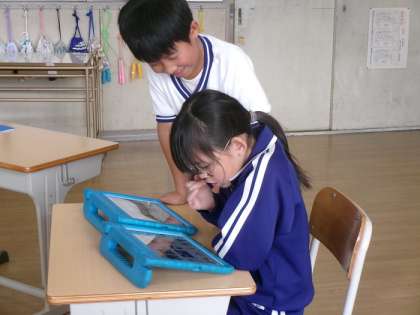 3年生が社会科の授業で、警察の仕事について調べました。子どもたちは3つのテーマに分かれ、共同で調べてわかったことを学習用タブレットにまとめていきました。子どもたちはタブレットの操作にだいぶ慣れてきており、サクサクと発表スライドを作っていました。