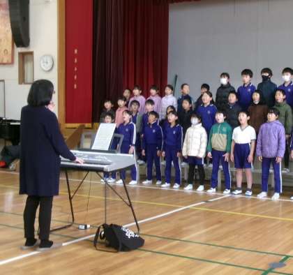4時間目に、全校児童が体育館で合唱を練習しました。子どもたちは、歌う回数を重ねるうちにだんだんと上達していき、自信をつけてきている様子が感じられました。