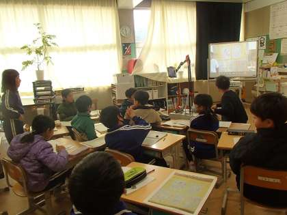 4年生が、オンラインで挙母小学校と交流会を行いました。今日は、挙母小4年生が行った「わたしたちと〇〇」というアンケート調査の結果について、本校の子どもたちが興味・関心をもったことを質問したり、感想を伝えたりしました。今回で3回目の交流をした子どもたちは、どんどん仲を深めており、楽しいひとときを過ごすことができました。