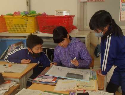 4年生が算数の授業で、仮分数を帯分数で表す方法についてグループで話し合いました。自分の考え方を友達に理解してもらうために一生懸命に説明する姿がたくさん見られました。