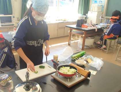 6年生が家庭科の授業で、自分で考えた昼食の献立を実際に調理しました。事前に調理手順をしっかり調べていたため、それぞれが手際よく調理することができました。カルボナーラ、トンテキ、餃子、オムライスなどバラエティーに富んだおいしいランチをいただくことができました!