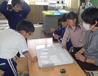 2年生が算数の授業で「表とグラフ」の学習を始めました。初日の今日は、みんなが好きな運動場での遊びをたくさんカードに書き出しました。そして、全員のカードを机に並べ、どんな遊びが人気なのか、とても楽しそうに話し合っていました。