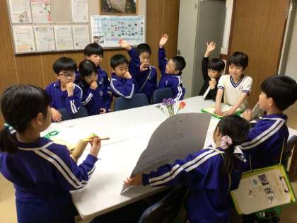 16日(火)の5時間目に、2年生が1年生を連れて学校内のいろいろな教室を案内しました。1年生は、2年生に優しく誘導されながら校長室や保健室などいろいろな教室を興味津々で見学していました。2年生は、この日に向けた練習の成果を発揮し、お兄さんお姉さんらしさを発揮していました。