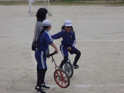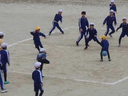 子どもたちは、休み時間になると運動場に飛び出し、元気に遊んでいます。ドッジボール、一輪車乗り、虫取りなどなど。学年の異なる仲間たちが、お互いが楽しく遊べるように気を配って、自分たちで楽しみを作り出しています。