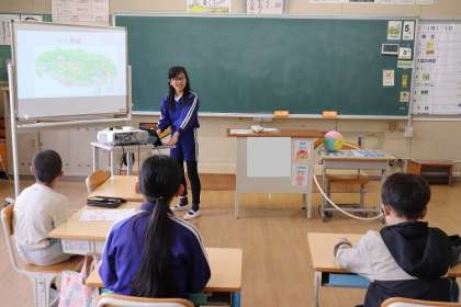 5月16日に行う学区探検「敷島っ子アドベンチャー」に向けて、6年生班長と5年生が、なかよし班の仲間に活動を説明しました。班長たちは、自作のパワーポイントを使って、じっくり時間をかけて考えた探検コースの説明や持ち物などを生き生きと説明していました。その姿から、「仲間に楽しんでもらいたい!」という強い思いが伝わりました。