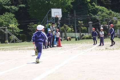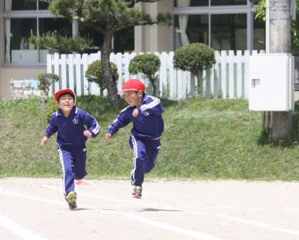 1・2年生が体育の授業で、体力テストに向けた練習を行っています。今日は、50m走を練習しました。頑張って走る友達に対し、「がんばれー!」と元気よく声援を送る微笑ましい姿が見られました。