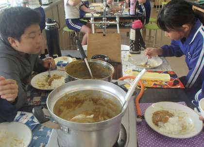 6/24「カレーライスづくり」 公開日 2024/06/24 更新日 2024/06/24 お知らせ 5年生が、7月の林間学校で行う野外炊飯の練習として、家庭科の授業でカレーライスを作りました。食事班の子たちがリーダーとなり、事前に調べておいた調理手順や方法を班の仲間に教えていました。 初めて作ったカレーに子どもたちは大満足。林間学校本番に向けて、自信を付けました!