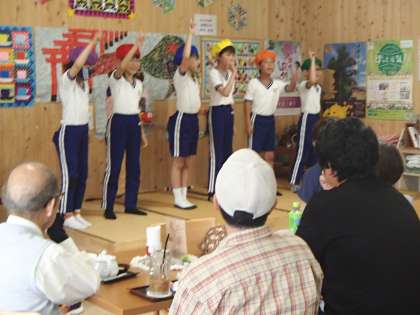 4年生が、「しきしまの家」に出向き、音楽発表を行いました。前回の音読発表の時と同じく満員御礼となった会場で、「ともだちになろうよ」「茶摘み」を歌った後、リコーダーで「よろこびのうた」「オーラ リー」を演奏しました。演奏の最後に、「聴いてくれたたくさんの人が笑顔になってくれたから、頑張って練習した甲斐がありました!」などと子どもたちが感想を伝え、大きな拍手をいただきました。