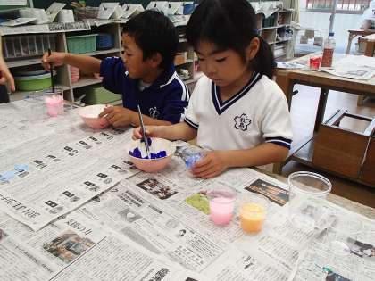 6/28「カラフルいろみず」 公開日 2024/06/28 更新日 2024/06/28 お知らせ 1年生が図工の授業で、絵の具を混ぜて色水を作りました。色を混ぜ合わせる度に変化してく不思議さを味わっていました。