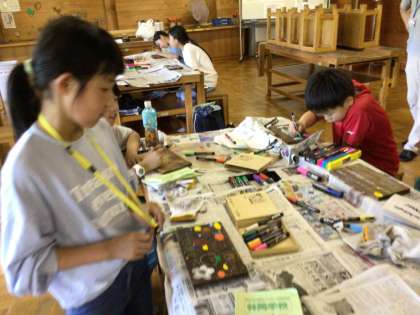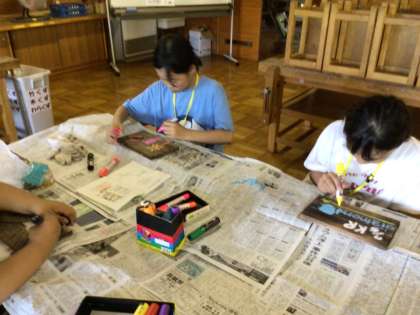 林間学校(2日目) その2 公開日 2024/07/05 更新日 2024/07/05 お知らせ 最後の活動は、クラフトの「焼き杉」作り。杉の板にバーナーで焼き色を付け、事前に考えてきた絵を描きまし。自分だけのオリジナル壁掛けが完成し、林間学校のよい思い出の一品ができました。