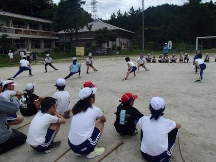 7/9「棒の手講習会」 公開日 2024/07/09 更新日 2024/07/09 お知らせ 1時間目に、地域講師の方々を招いて棒の手講習会を行いました。はじめに、講師の方に杉本藤牧検籐流の模範演武を披露していただきました。次に、子どもたちが互いの流派の演武を見せ合い、それぞれのよさを伝え合った後に、各流派に分かれて講師の方から指導を受けました。 「声を大きく」「腰は深く落とす」ことで、技にメリハリがつくことを教わり、子どもたちはさらにレベルアップできました。