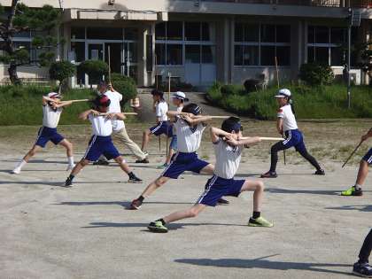 9/3「棒の手練習」 公開日 2024/09/03 更新日 2024/09/03 お知らせ 朝の活動の時間に、地域講師の方々を招いて棒の手練習を行いました。夏休み明けの子どもたちは、最初は自信なさげでしたが、だんだんと感覚を取り戻すにつれて掛け声も大きくなりました。講師の方から「夏休み明けの最初の練習にしては上出来!」と褒めていただけました。