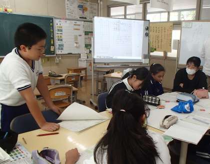 6年生の算数の授業では、自分が問題をどうやって解いたのか、順を追って分かりやすく仲間に伝えることを意識して発言する姿が見られました。また、問題を解く時に気を付けていることなども伝えていました。6年生は、とても息の長い発言ができるようになり、とても成長を感じました。