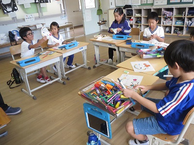 今日から後期がスタート。子どもたちは、学級組織を決めたり教室の掲示物を作ったりすることで、気持ちを新たにしていました。