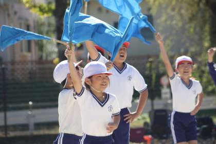 11/9「運動会 その2」 公開日 2024/11/09 更新日 2024/11/09 お知らせ 本年度の運動会の赤白対抗応援合戦は、フラッグ(旗)を使った表現活動に初挑戦しました。赤白対抗全員リレーでは、どのチームもバトンパス練習の成果を発揮し、大接戦となって観衆を沸かせました。 運動会の後には、赤組、白組それぞれ運動会を振り返る会を行い、チームで協力できた喜びを語り合う姿が見られ、チームの絆がさらに深まっていました。