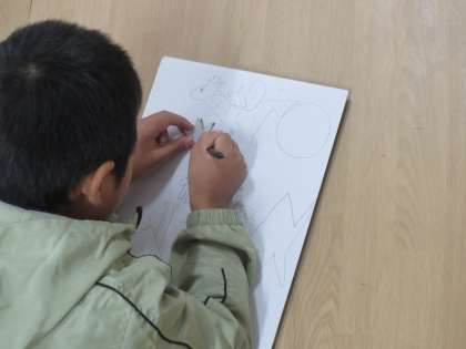 今日は、絵や模様を切り抜くことを頑張りました。細かな作業に集中して取り組んでいました。