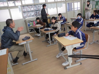 5年生が、ふるさと学習で旭地区の獣害について調査しています。今日は、地元の専業農家の方を教室に招いてお話を聴きました。獣害の実状や、被害を受けたときの農家としての思いなど、説得力のあるお話に子どもたちは深く聞き入っていました。