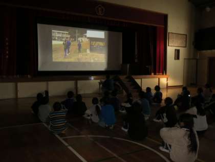 昼の休み時間に、図書委員会が撮影・編集したショートムービー「実写版 3びきのこぶた」の上映会が行われました。こぶたやオオカミの役になり切った図書委員の演技を鑑賞した全校児童は、ずっと笑顔で楽しい時間を過ごすことができした。