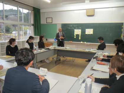 本日、外部講師を招いて、6年生の学級で道徳の研究授業を行いました。児童の下校後に授業協議会を行い、講師から指導・助言を受けました。子どもたちが抱いた疑問を子どもたちで考えていく授業づくりを学ぶ貴重な機会となりました。今日の成果と改善点を踏まえ、こどもが主体となる授業づくりをめざしていきます。