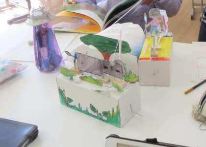 6年生が、ものづくり実践教室で、クランクの仕組みを使ったおもちゃを作りました。子どもたちはクランクの動きをどう生かすかに工夫を凝らし、満足いく作品が出来上がりました。