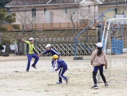 敷島っ子たちは、昼の休み時間に、年下・年上関係なく、一緒になって楽しく遊んでいます。身長や体力の違いがありますが、みんなが楽しめるよう、自然と気づかい、工夫しながら楽しんでいます。