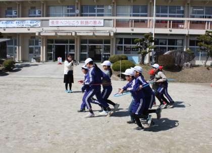 昼の休み時間に、6年生の企画による全校遊びが行われました。フラフープの輪の中に縦割り班の仲間が入ってリレーをするなど、工夫を凝らしたユニークなリレーを楽しみました。「やるだけでなく、見ているだけでも楽しめた!」と大好評でした!