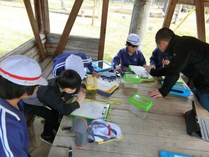 3年生から始まった理科の授業で、春の生き物や植物見つけをしました。