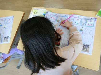 4月17日(木)1年生 今日の様子 公開日 2025/04/17 更新日 2025/04/17 お知らせ 国語の授業です。ひらがなの練習をしています。「とめ」や「はね」を意識して、鉛筆の持ち方もしっかりチェックして、丁寧に書いていきます。 写真下:給食の時間です。今日はたけのこご飯、牛乳、さばの銀紙焼き、五目汁、ヨーグルトです。みんな箸も上手に使えますね。