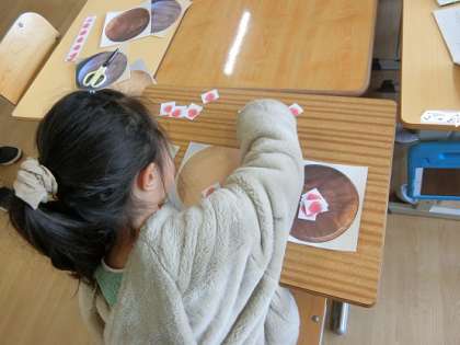 4月17日(木)3年生 今日の様子 公開日 2025/04/17 更新日 2025/04/17 お知らせ 初めての「わり算」の学習です。12個のイチゴを3人で同じ数ずつ分けます。この「同じ数ずつ」が割り算のポイントです。既習の九九が役立ちそうです。 写真下:国語「すいせんのラッパ」の音読のパート分けをしています。担任「ナレーターのパートが54か所あって、6人で分けるから… これ、わり算でできるかな」算数で学習したわり算を早速使ってみます。「54÷9=6!」無事に一人6か所と分かりました。