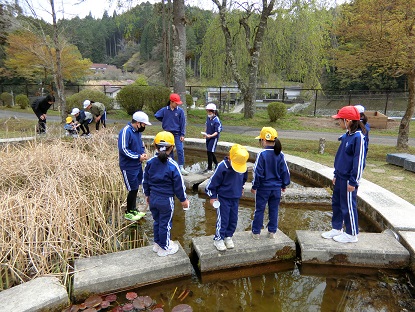 4月18日(金)1年生 今日の様子 公開日 2025/04/18 更新日 2025/04/18 お知らせ 「藻集め」に一区切りをつけた1年生。水の中をすいすい元気よく泳ぎ回るメダカが気になります。「お手製のメダカすくい」を手に、奮闘します。太陽の時間にはなかなか捕まえられませんでしたが、わくわくの時間にはたくさんのメダカが飼育ケースの中で泳いでいました。