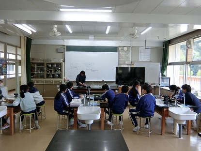 写真下:理科「ものの燃え方」の学習です。次回の実験に向けて、必要な器具や手順を確認しています。