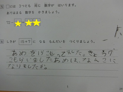 4月23日(水)2年生 今日の様子 公開日 2025/04/23 更新日 2025/04/23 お知らせ 算数の授業です。「たし算とひき算」のテストの前に、プリントの問題を解いて確認をしています。 写真中:□には、3つとも同じ数字が入ります。「72−□=□□」当てはまる数字は何でしょうか。子どもたちは苦戦しながらも、友達のヒントを頼りに見事解くことができました。 写真下:体育の授業の様子です。号令が「ネコ」なら右、「ネズミ」なら左の壁にタッチします。「ネ、ネ、ネ…」「ネコ!」