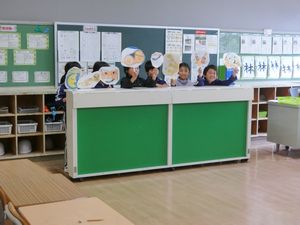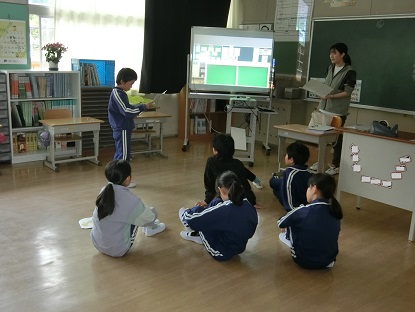 写真上・中:国語科「こわれた千の楽器」の音読発表会に向けて練習しています。自分たちの音読やペープサートの操作を動画で確認しながら「もっとこうした方がいい」という点を見付け、どうするとよくなるか話し合っています。音読を開始した頃と比べると、感情のこもった表現がとても上手になっています。