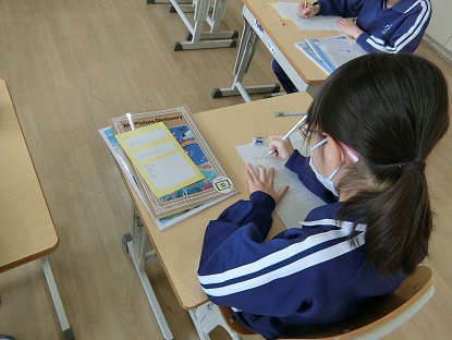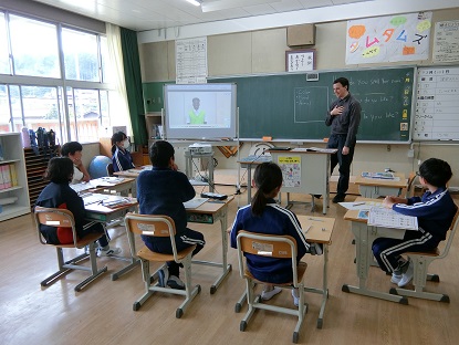 4月28日(月)5年生 今日の様子 公開日 2025/04/28 更新日 2025/04/28 お知らせ 外国語の授業です。自分の名前の綴りや好きなものについて話します。カードに自分の名前や似顔絵、好きな色、好きな食べ物、好きな動物をかいて、動画の中の人物「BRIAN」と会話をしました。 ALTの指示も、英語でしっかり聞き取れる5年生です。 写真下:給食の時間の様子です。「おいしいですか?」に、5年生は「いいね」サインで答えてくれました。