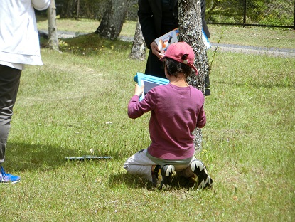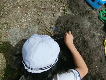5月7日(水)4年生 今日の様子 公開日 2025/05/07 更新日 2025/05/07 お知らせ 理科「季節と生き物」の学習で、春の生き物を探しています。 が、今日は雨上がりのせいか、なかなか生き物に出会えません。やっと出会えた「クマ毛虫」にみんな集まり、長さを測ったりじっくり観察してスケッチしたりしています。モデルになっているせいか、クマ毛虫も動かずにじっとしています。「暑いから」と学習用タブレットで日陰を作ってあげる、優しい4年生です。