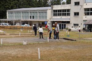 マレットゴルフに挑戦です。説明を聞いて始めました。みんなとても上手です。