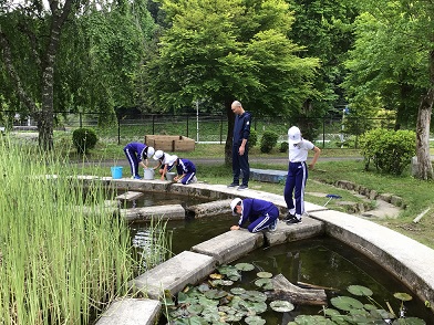 5月16日(金)5年生 今日の様子 公開日 2025/05/16 更新日 2025/05/16 お知らせ 理科で観察するメダカを教室で飼育するため、着々と準備を進めている5年生です。今日は、丸池に水草を取りにやってきました。なかなか抜けませんが、力いっぱい引っ張るとちぎれてしまうので、手加減が難しそうです。 今日はまだメダカを迎え入れることはできませんが、丸池のメダカが5年教室で元気よく泳ぐ姿を見るのが楽しみです。