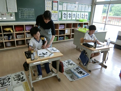 5月27日(火)4年生 今日の様子 公開日 2025/05/27 更新日 2025/05/27 お知らせ 書写の授業の様子です。今日は「上下の部分の組み立てに気をつけて書こう」で「雲」の練習をしています。とめ、はらい、おれ、点など、たくさんの要素があり、バランスをとるのが難しい字ですが、一画ずつ手本を見て、集中して取り組んでいました。