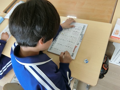 算数科で筆算でのひき算の仕方を学習しました。位をそろえて、一の位から順番にひき算をすればよいことが分かりました。筆算の仕方が分かると、いろいろなたし算、ひき算の練習問題に黙々と取り組んでいました。