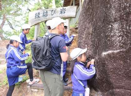 6月2日(月)3年生 今日の様子 公開日 2025/06/02 更新日 2025/06/02 お知らせ ふるさと学習の地域探検第2弾として、お須原山に出かけました。子どもたちがとても興味を持っていた「天狗岩」だけでなく、様々な名前が付いた岩がいくつもありました。実際に行ってみることで、また新たな疑問や調べたいことが見つかったようです。これからさらに学びを深めていきます。