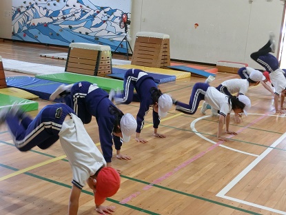6月2日(月)4年生 今日の様子 公開日 2025/06/02 更新日 2025/06/02 お知らせ 3・4年生の体育科「跳び箱」の授業の様子です。約1年ぶりということで、ウォーミングアップに跳び箱の基本の動きを取り入れました。慣れてくると、手をついてお尻を高く上げ、両足で一拍する動きがスムーズにできるようになりました。2人組で馬跳び練習をした後は、いよいよ跳び箱に挑戦です。 みんな久しぶりとは思えない、とてもきれいなフォームで跳んでいました。