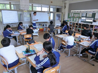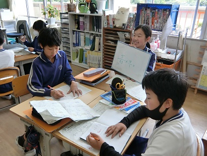 6月4日(水)6年生 今日の様子 公開日 2025/06/04 更新日 2025/06/04 お知らせ 算数科「分数のかけ算」の学習の様子です。各自練習問題を解いた後、間違えやすい問題を、みんなでもう一度ポイントを確認しながら解いたり友達と確認し合ったりしました。みんなが確実に解けるようになったところで、グループで問題を出し合いました。 「やってみる→確認する→もう一度やってみる」ことで、理解を深めていきます。