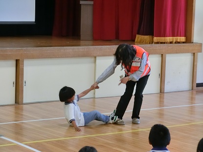 あってはならないことですが、「もしものとき」にどう行動すればよいか知っておくことは、とても大切です。子どもたちも真剣に参加することができました。