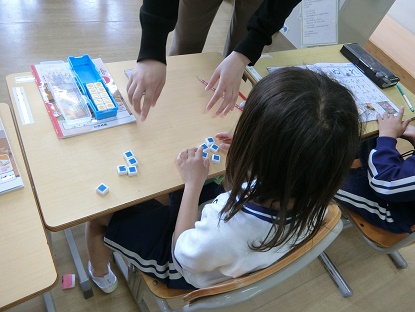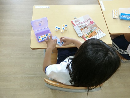 6月6日(金)1年生 今日の様子 公開日 2025/06/06 更新日 2025/06/06 お知らせ 算数科「あわせていくつ」の学習です。「5個のケーキと3個のケーキをあわせると、何個になりますか」という問題を、数図ブロックを操作して考えました。「あわせて」がたし算になる言葉であることを知り、「5+3=8」と式に表せることを学びました。これからいよいよ、たし算の学習へと進んでいきます。