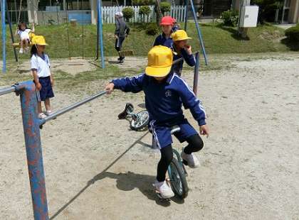 6月6日(金)1年生 休み時間の様子 公開日 2025/06/06 更新日 2025/06/06 お知らせ 一輪車にチャレンジし始めた1年生。まだバランスをとるのが難しそうな様子ですが、すいすい乗れる上級生にコツを教えてもらいながら、何度も挑戦しています。きっとすぐに、1年生が一輪車で走り回る姿が見られるようになるでしょう。